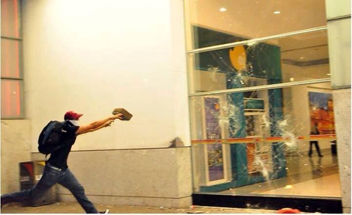 FOTO Impressionante: “manifestante” atira tijolo na porta do Midway